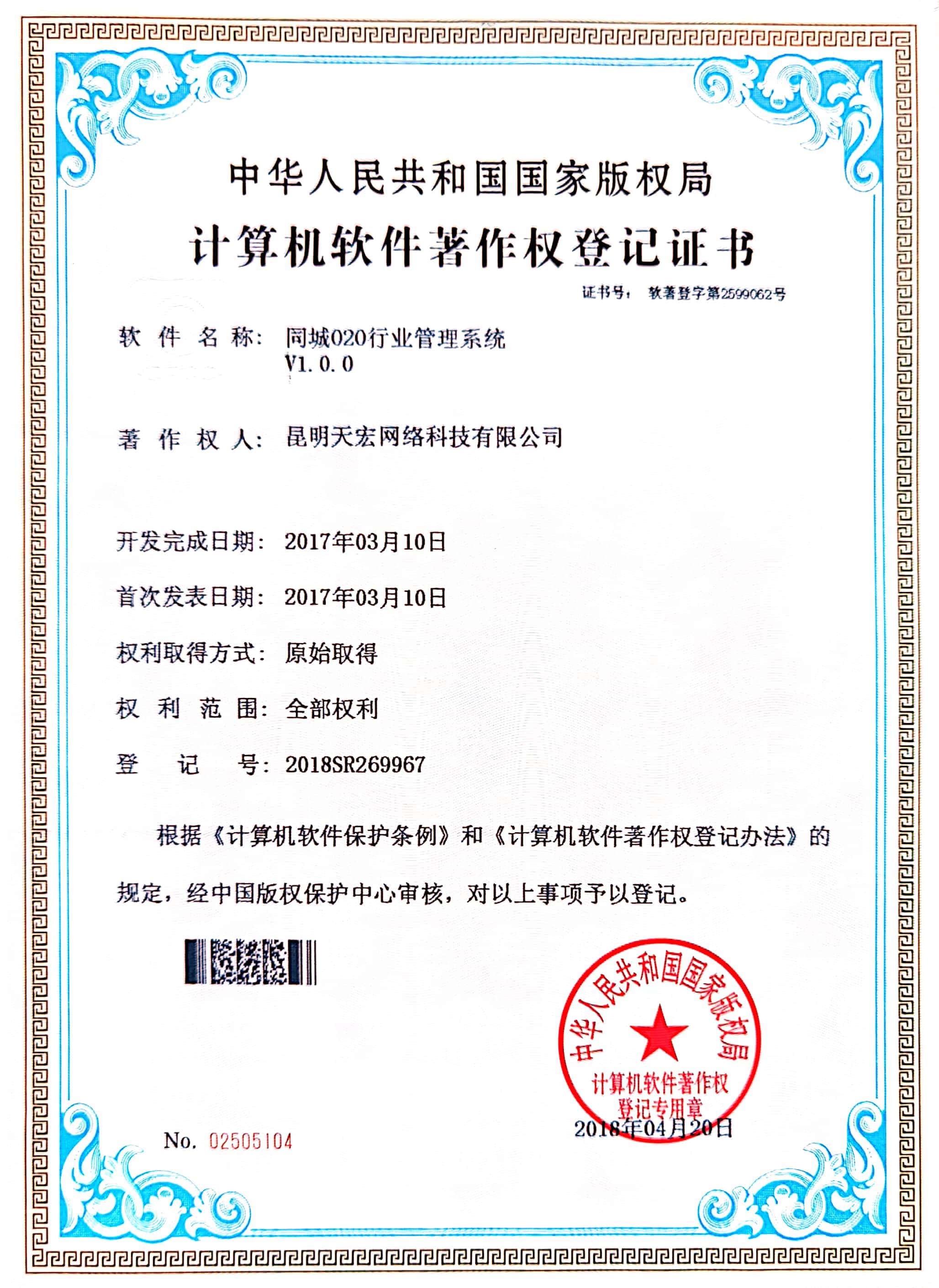 天宏網(wǎng)絡(luò)通過不斷的研發(fā)創(chuàng)新,現(xiàn)擁有50多項(xiàng)計(jì)算機(jī)軟著證書,包括多商家點(diǎn)餐系統(tǒng)、門店收銀管理系統(tǒng)、通用OA協(xié)同辦公管理系統(tǒng)、智慧商圈運(yùn)營管理平臺、天宏健康智慧+系統(tǒng)、同城O2O管理系統(tǒng)等。